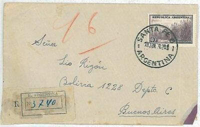 Item: Cover sent registered from Santa Fe to BA
