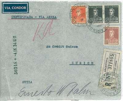 27318 – ARGENTINA – POSTAL HISTORY – REGISTERED COVER to SWITZERLAND Condor