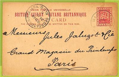 Item: Postal Stationery card to France from Mahaicomy