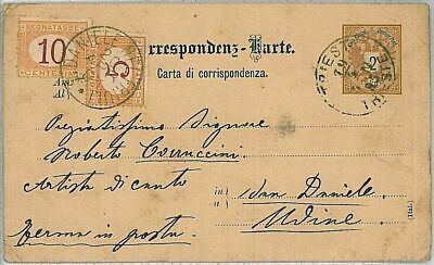 36749 AUSTRIA – POSTAL ENTRY from TRIESTE to SAN DANIELE – TAXED on ARRIVAL 1895