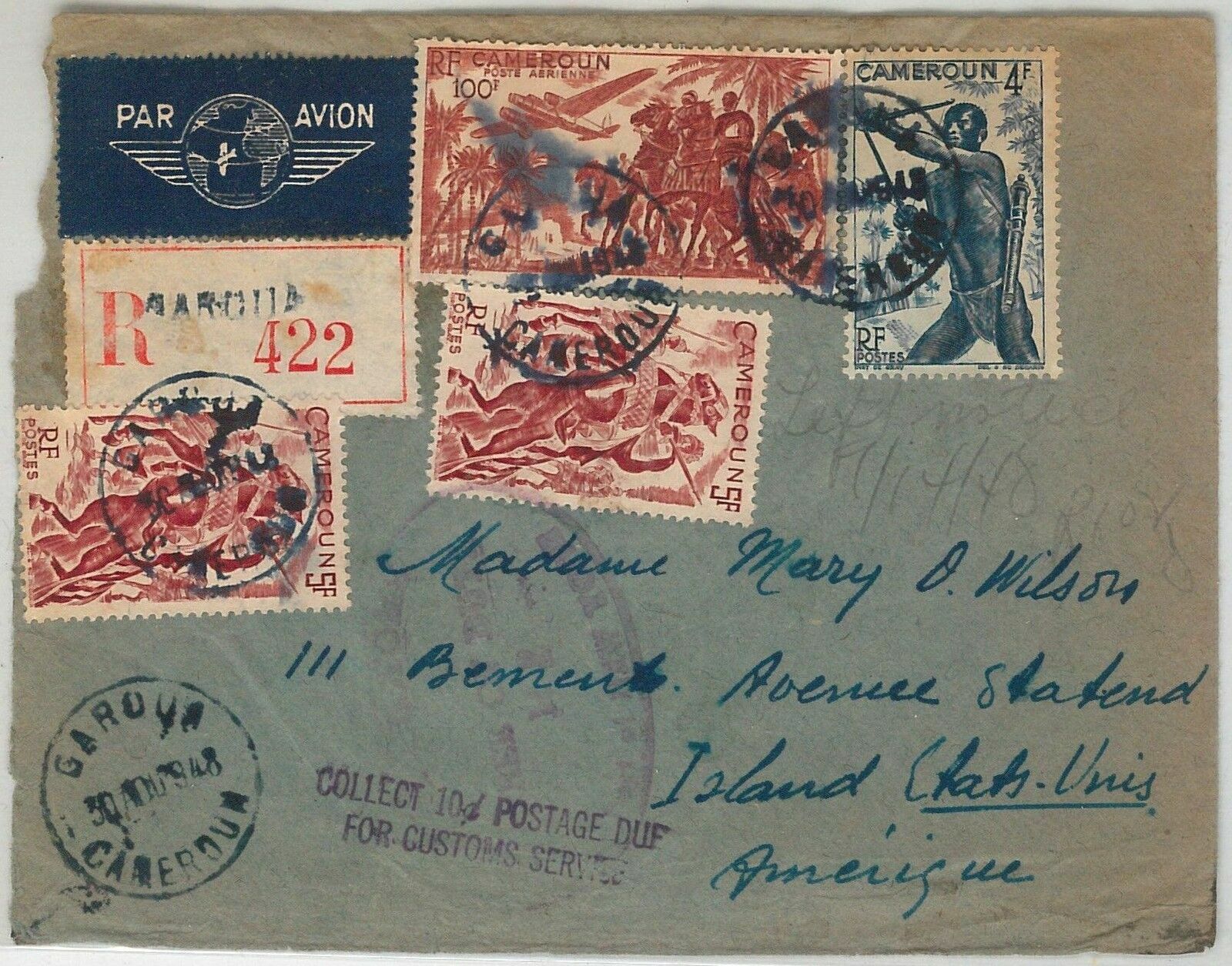 44779 – CAMEROUN Cameroon – POSTAL HISTORY – REGISTERED COVER to USA 1948