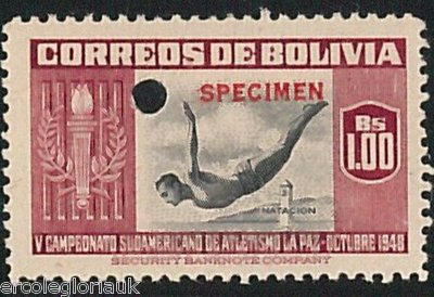 Country: Colombia Item: Single MNH mint stamp, overprinted Specimen in red. The stamp has a holepunch, as is typical with specimen stamps.