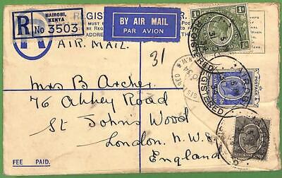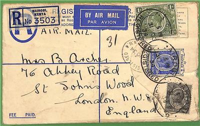 Item: Registered postal stationery cover sent to England from Nairobi, with added stamps. Return address in Egypt!