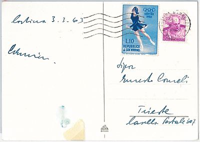 56516 – WINTER OLYMPICS – ITALY – POSTAL HISTORY: SPECIAL POSTCARD Cortina 1963