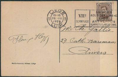 Item: Postcard with special postmark for the 1920 Olympic games