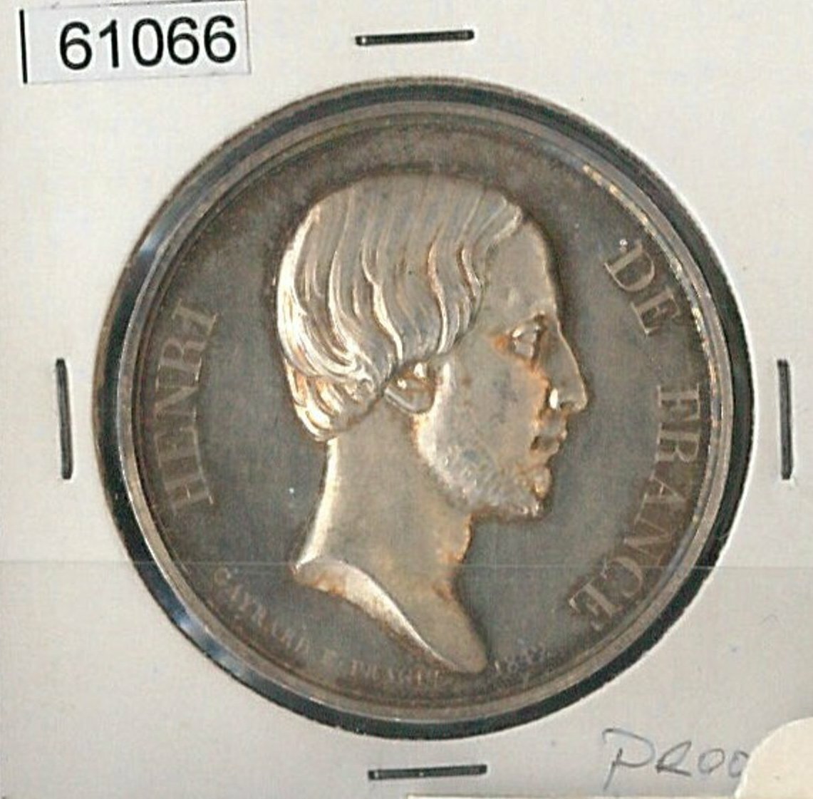 Item: Vintage medal featuring Henri D’Artoise, pretender to the French throne. Silver proof.