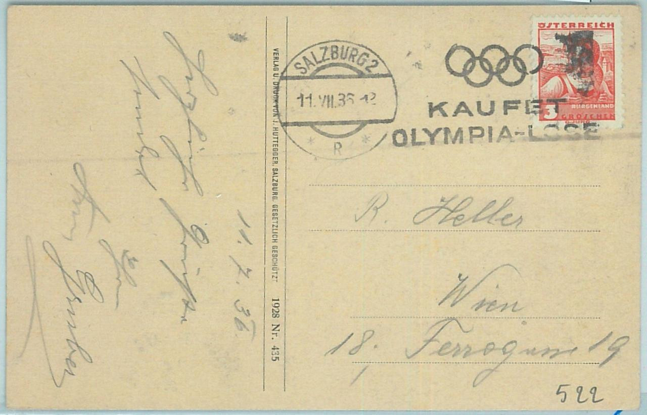 Item: Postcard with special Olympic games postmark: Salzburg 2