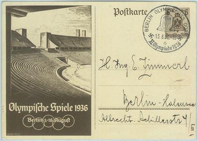 Item: Postal Stationery Card with special Olympic games postmark: Berlin o