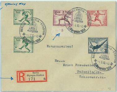 Item: Registerd cover with special Olympic games postmark : Berlin