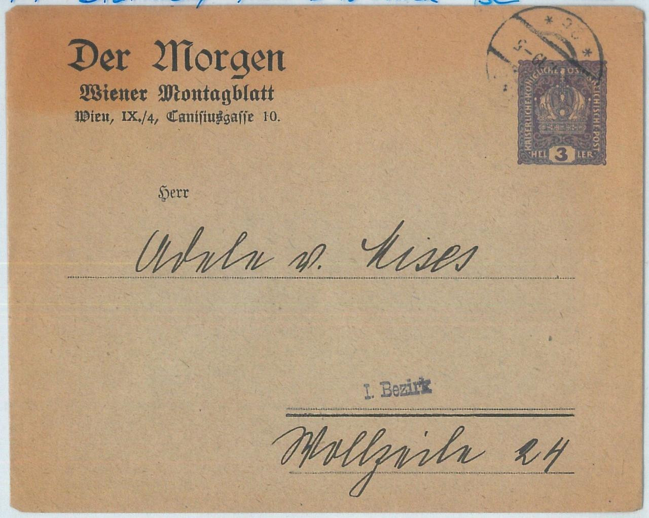 Item: Private Postal Stationery Cover from Wien sent to famous economist Von Mises