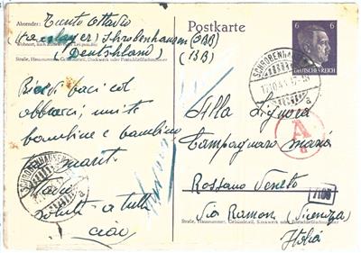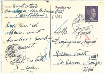 Item: Postal stationery card sent from Italian “worker” in Germany Schrobenhausen OBB Lager