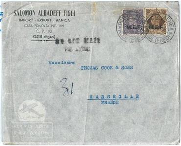 Item: Cover with GB stamps with MEF overprint, used during occupation of Greek Islands.