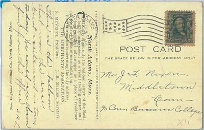 Item: Postcard of the North Adams 1 who won the Race on August 14th 1908, card sent on the 16th of August.