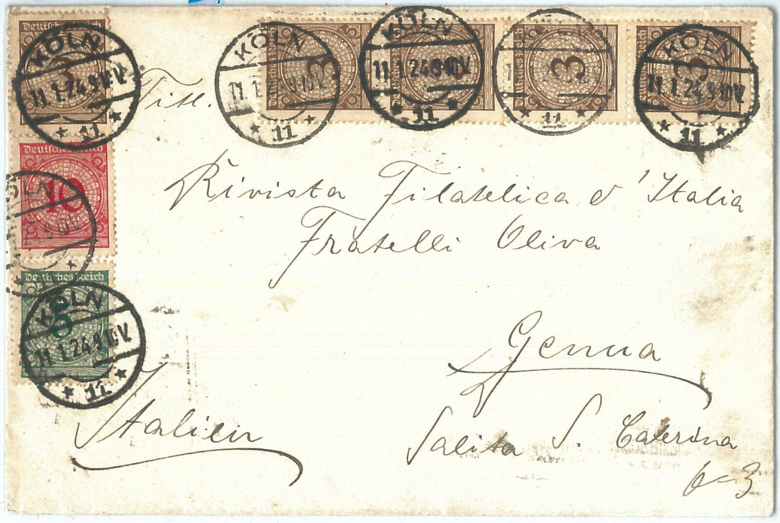 72513 – GERMANY – POSTAL HISTORY – Cover To ITALY – INFLATION PERIOD 1924