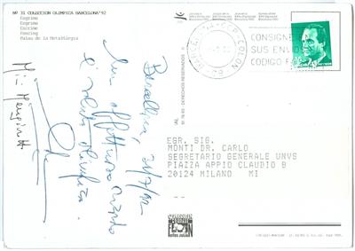 Item: Postcard signed by one of the Mangiarotti brothers, famous Italian fencers