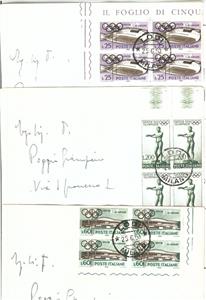 Item: Set of 9 cards with FDC postmarks on corner blocks of 4!