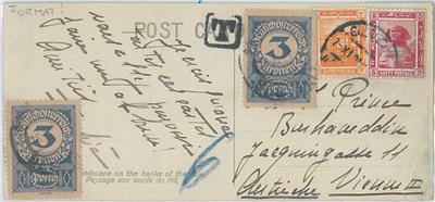 Item: Mignon postcard from Egypt to Austria, taxed on arrival, probably because of the size of the postcard!