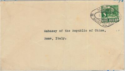 Item: Cover sent to Chinese embassy in Rome, with nice postmark: sent via Radio!
