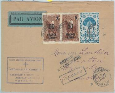 Item:   First flight Cover: Madagascar / Comores.  Muller # 123