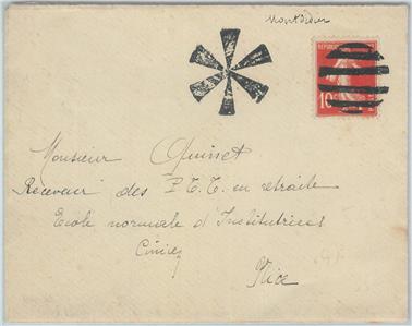 Item: Fancy cancellation on cover franked with a 10cents semeuse fond plein.