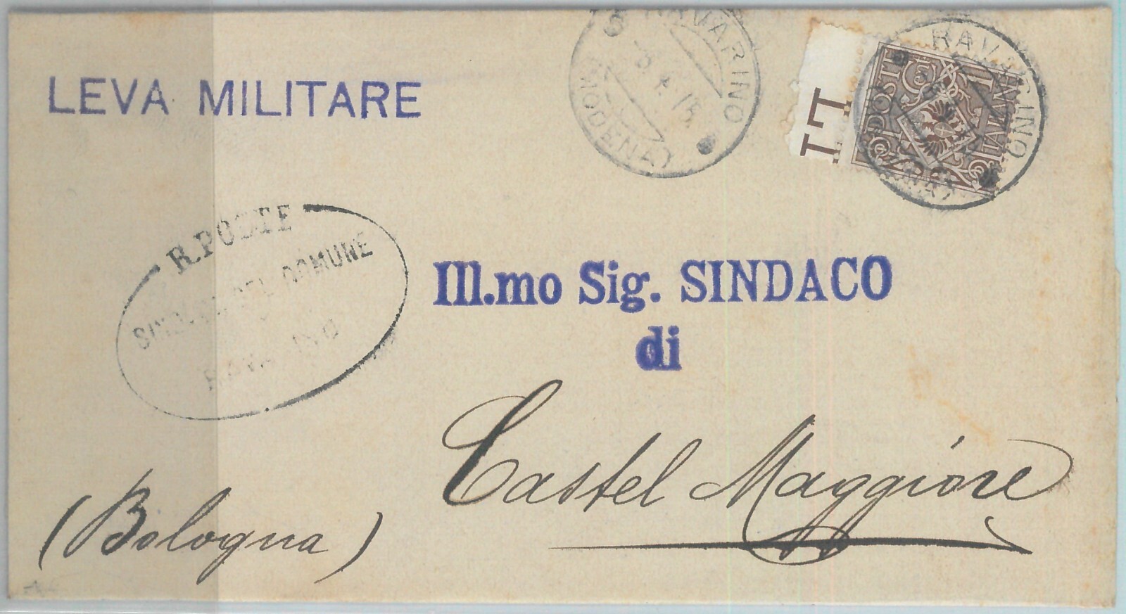 82543 – REGNO – STORIA POSTALE – Sass # 68 BORDO DI FOGLIO su BUSTA da RAVARINO