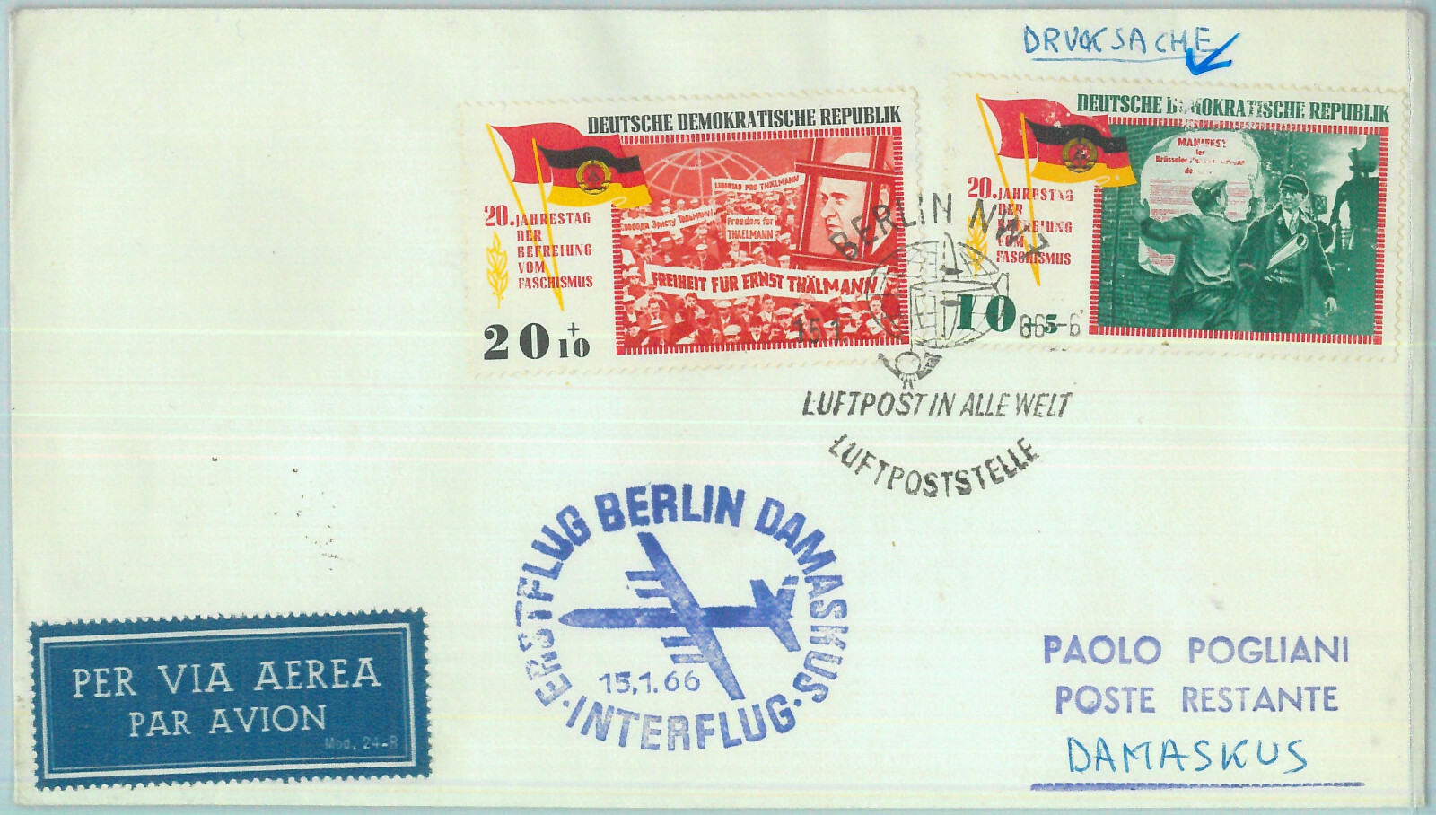 83175 – GERMANY DDR – Postal History – FIRST FLIGHT: Berlin – DAMASCUS