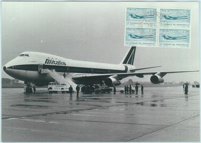 Item: Block of 4 stamps used on large photo of Alitalia plane