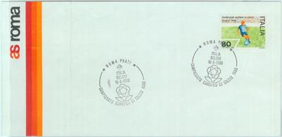 Item: Special postmark on card. European Football championship. Italy – Belgium. – PLEASE NOTE: Cover is bent down the middle.