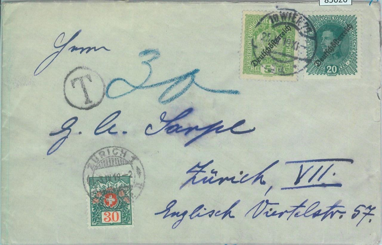 Item: Overprinted stamps on cover to Switzerland. Taxed on arrival, with rare DO censor label