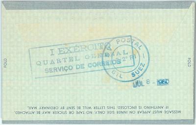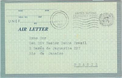 Item: Aerogramme sent by United Nations Emergency Forces in Suez, to Brazil