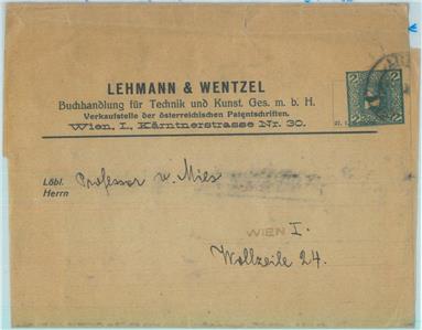 Item: Private postal stationery wrapper, addressed to Proffesor Von Misses, famous jewish scientist