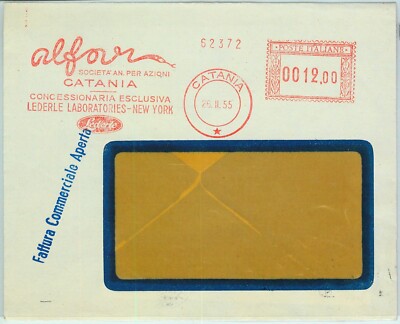 Nota: Annullo meccanico rosso su busta: Alfor, Catania