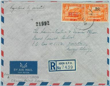 Item: Airmail registered Cover to Kenya