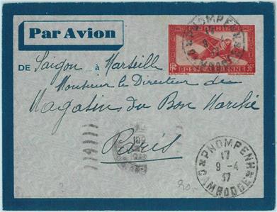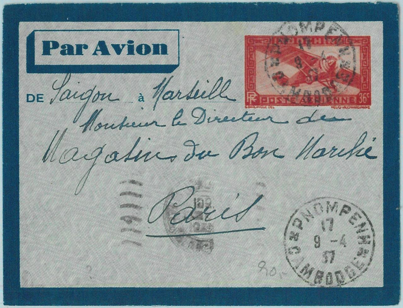 Item: Aerogramme cover sent from Cambodia to France