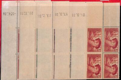 Item: Yvert # 380/384 – 5 corner Blocks of 4 with dated corner.
