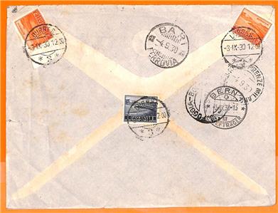 Item: Registered cover to Switzerland through Bari (Italy)