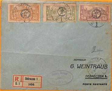 Item: Hungary overprinted stamps on Registered cover