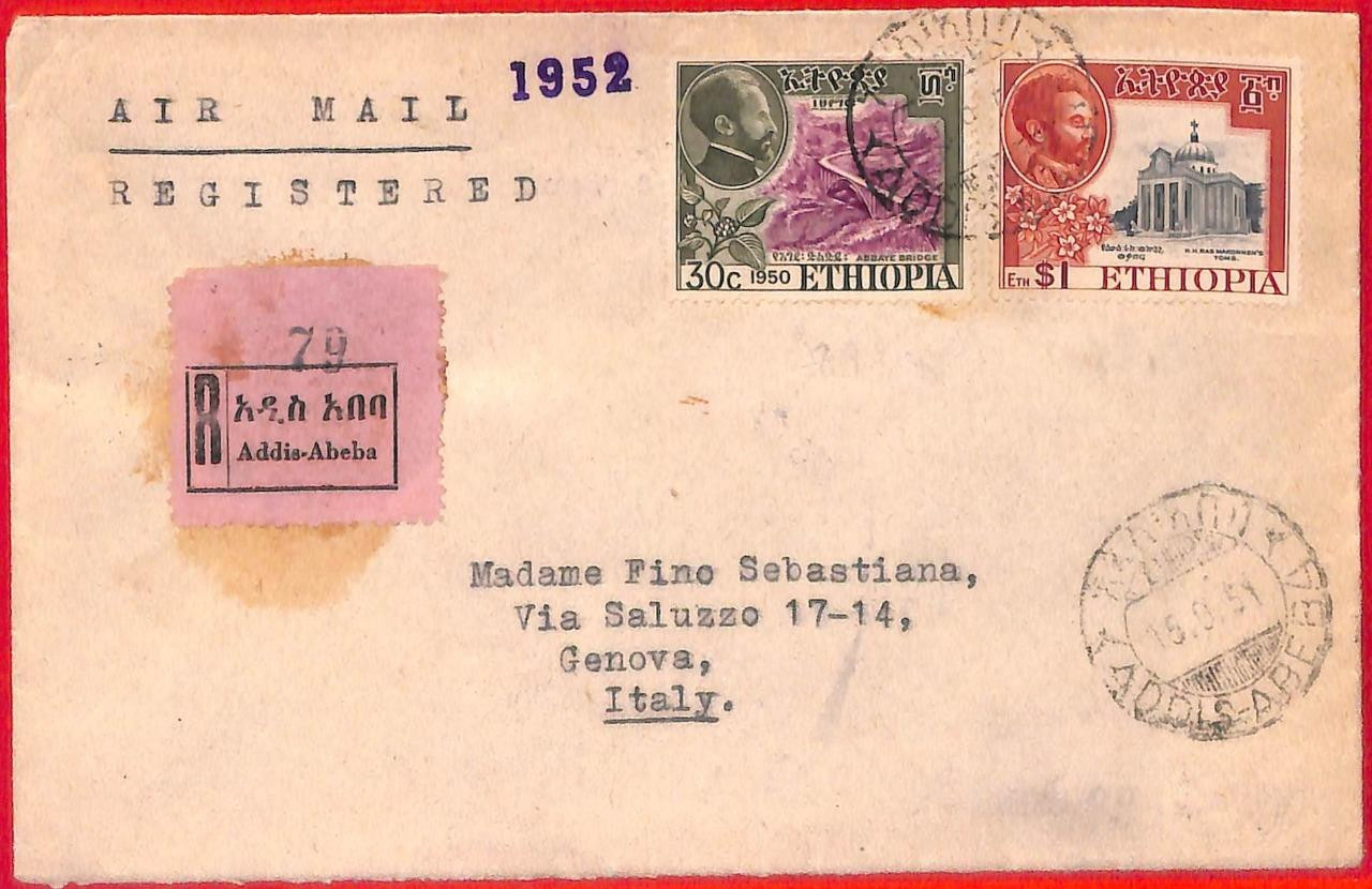 Item: Registered airmail cover to Italy
