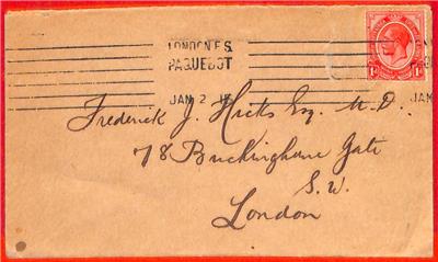 Item: SG# 4 on cover to London, with “London ES Paquebot” postmark!