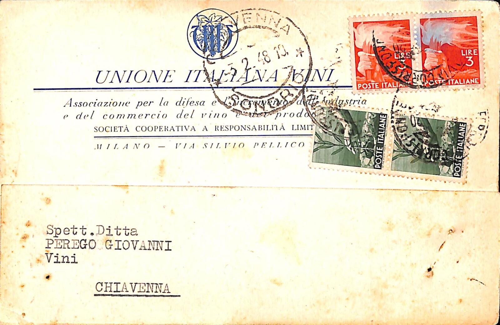 Viaggiata : SI 1948. RETRO NON DIVISO.