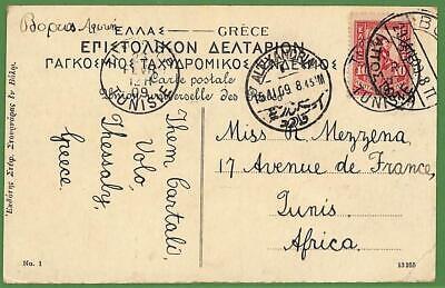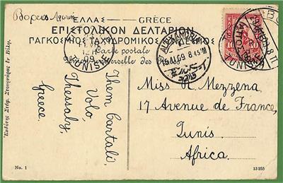 Item:  Single Flying mercury stamp on postcard to Tunisia