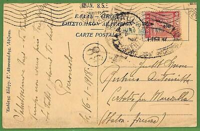 Item: Single overprinted stamp on postcard to Italy, with double censor marks!
