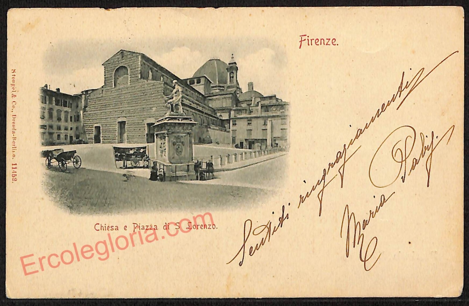 ae6357 – CARTOLINA D’EPOCA Firenze Città – Chiesa e Piazza di S. Lorenzo