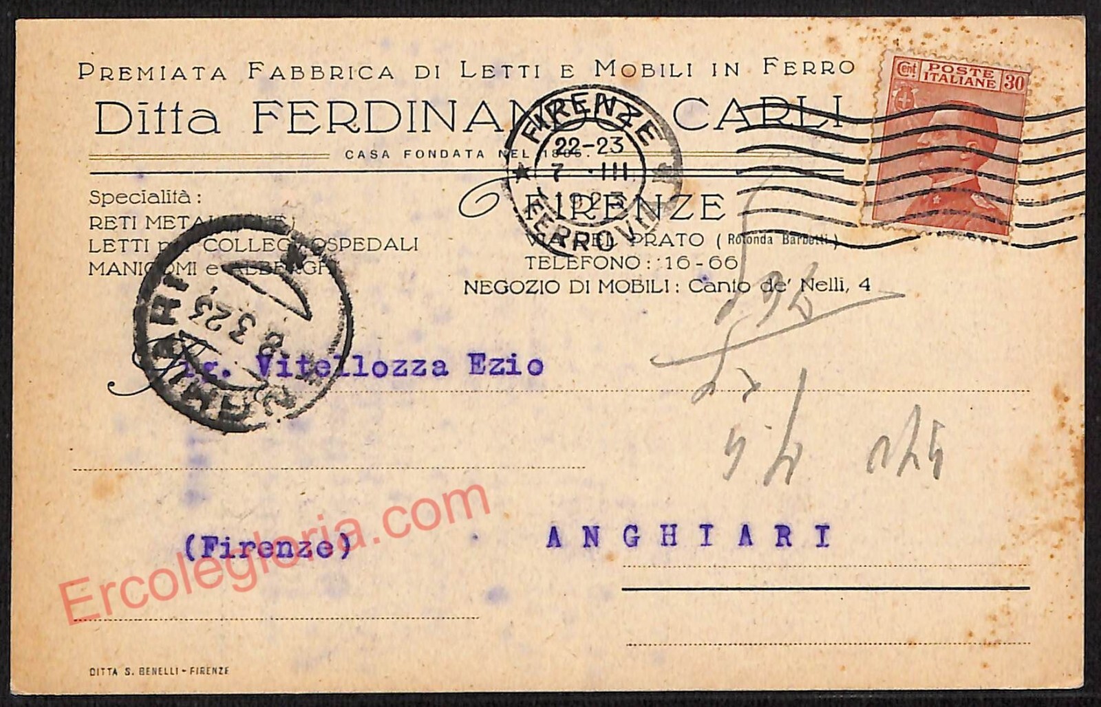 ae6701 – CARTOLINA D’EPOCA – Firenze Città – Ditta Ferdinando Carli