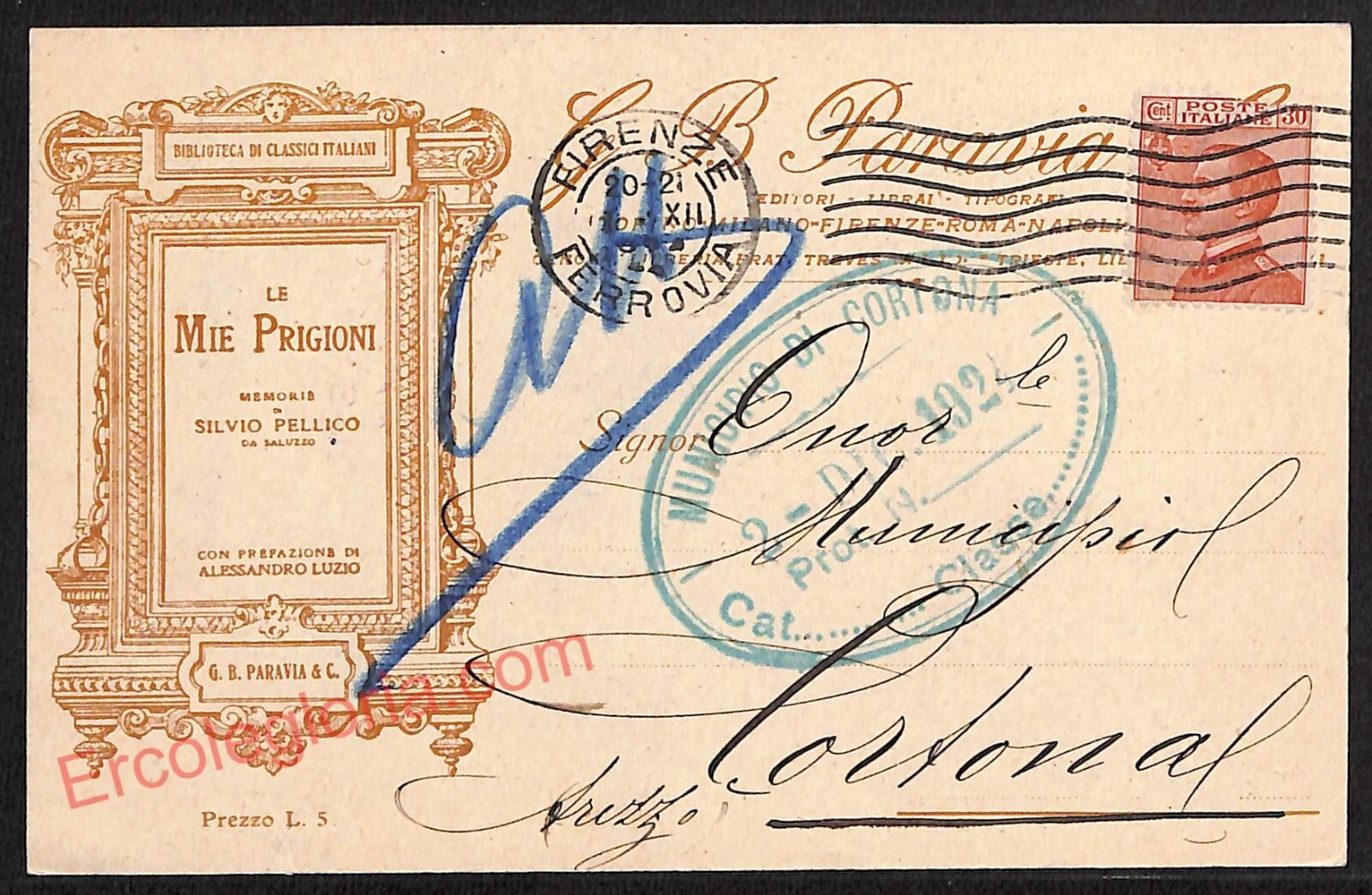 Viaggiata : Si 1924. Retro non diviso