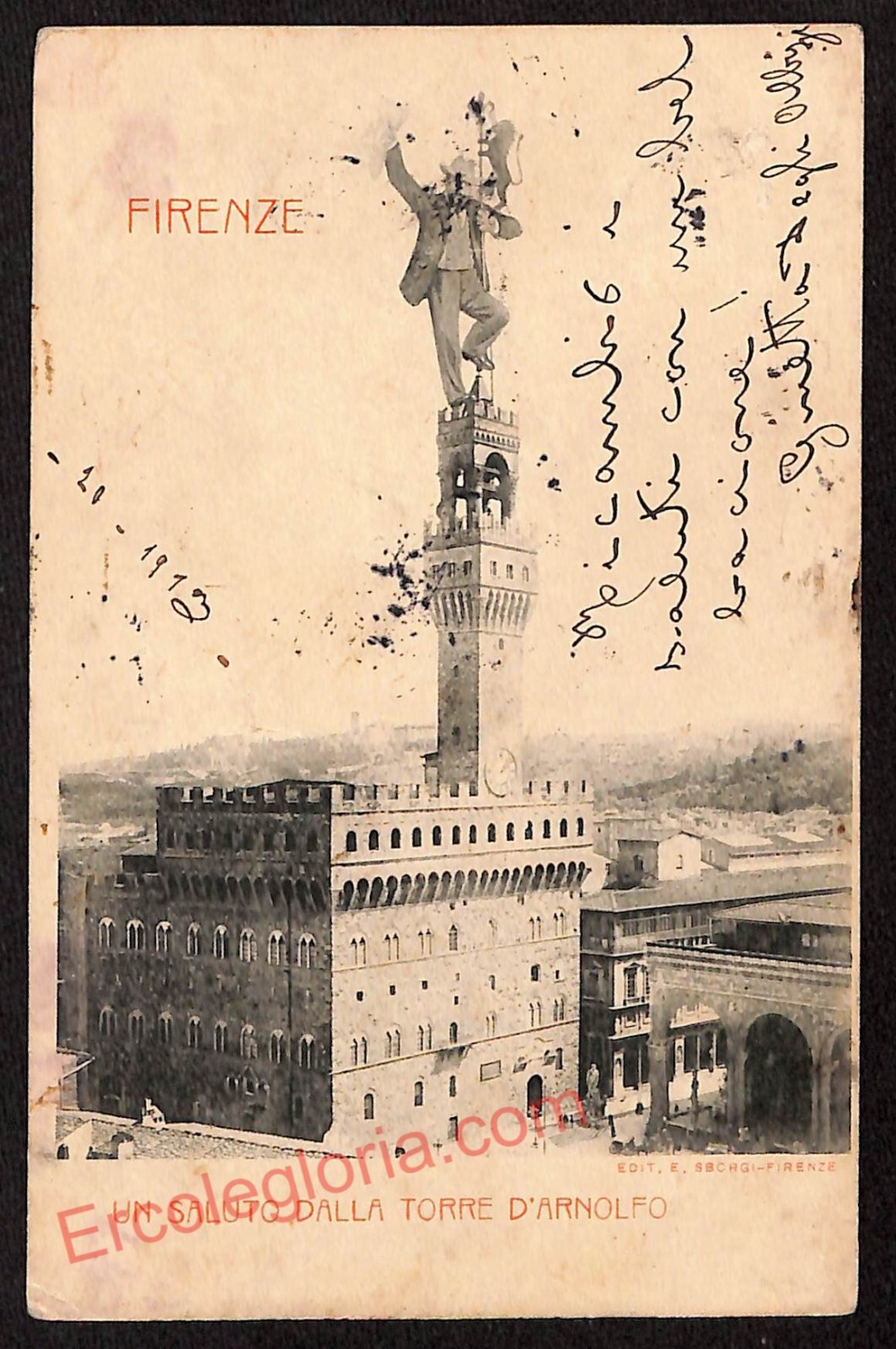 ae6871 – CARTOLINA D’EPOCA – Firenze Città – Torre D’ Arnolfo 1913