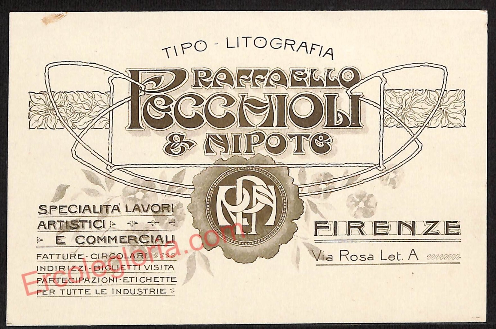 ae6974 – CARTONCINO D’EPOCA – Firenze Città – Raffaello Pecchioli