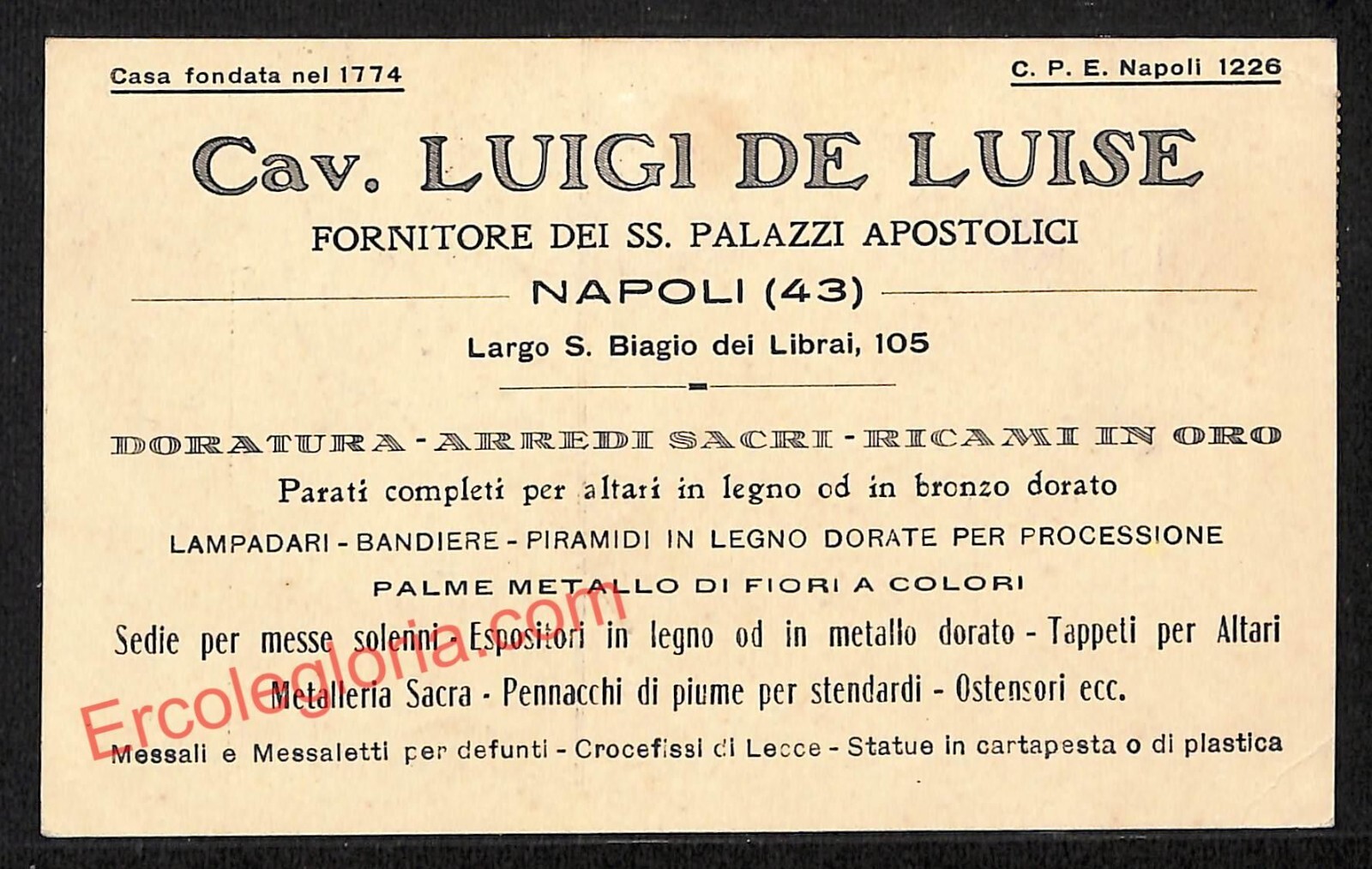 ah3114 – STORIA POSTALE – Napoli Citta – Luigi de Luise