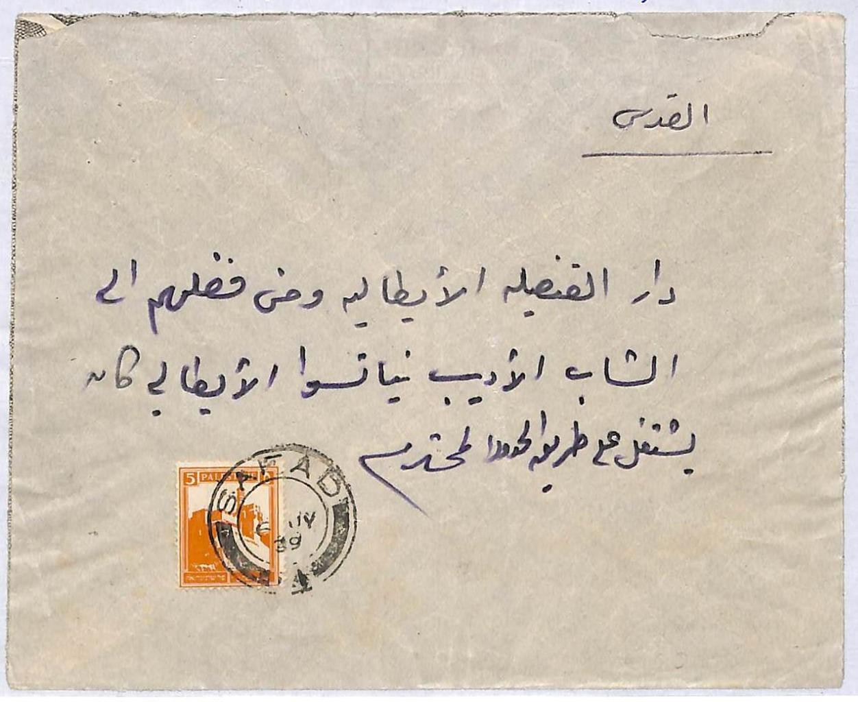 Item: Cover from Sfat (Safed) to the Italian consulate in Jerusalem.