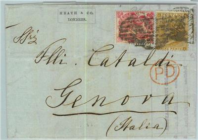 Item: SG #75 + 86 on cover to Italy. The stamps are heavily postmarked but perfect.